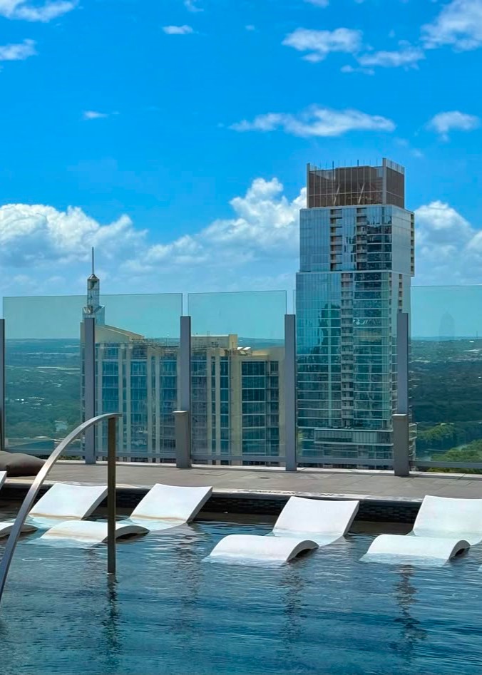 - ARRIVE Austin – Este moderno hotel em East Austin oferece quartos elegantes com design contemporâneo, piscina na cobertura e localização privilegiada no badalado distrito cultural, com fácil acesso a restaurantes e bares locais.