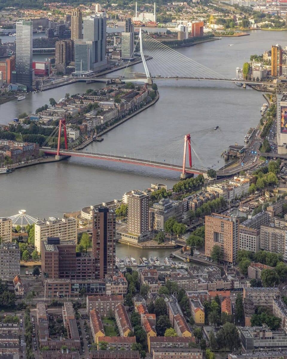 - Ponte Erasmus: Ponte suspensa icónica que liga o norte e o sul de Roterdão.