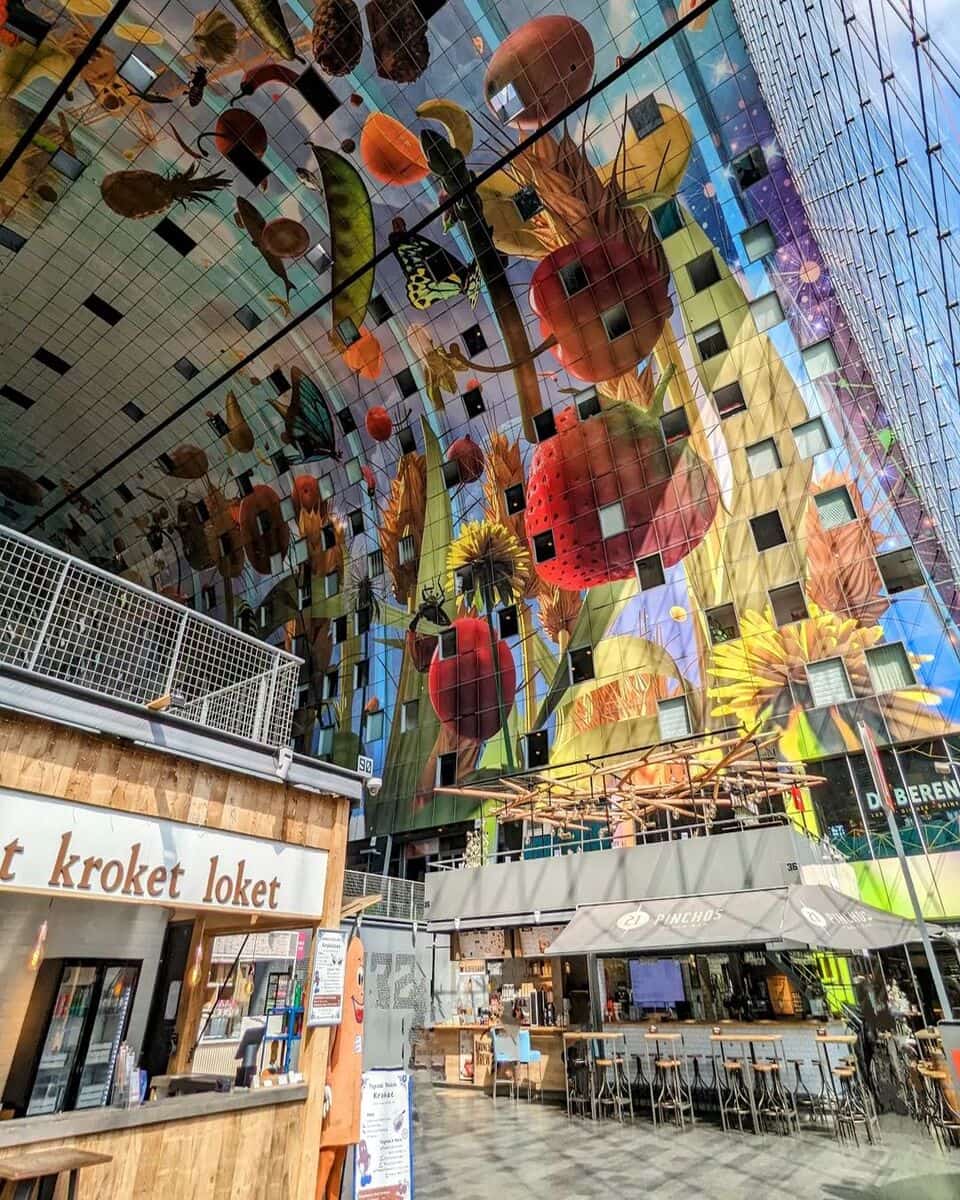 - Markthal: Um impressionante mercado coberto com um enorme teto decorado com obras de arte.