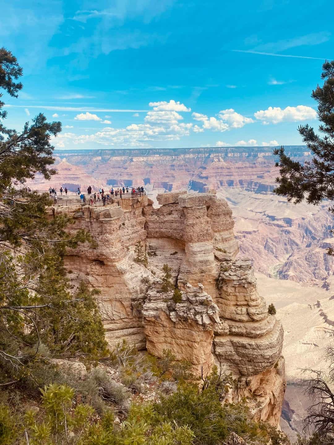 Recursos de segurança. A área oferece trilhas pavimentadas bem conservadas e áreas de observação seguras, tornando-a ideal para famílias com crianças pequenas. A Rim Trail oferece caminhadas suaves com vistas espetaculares, enquanto os serviços de transporte eliminam as preocupações com estacionamento e mantêm as famílias juntas. A Desert View Watchtower oferece vistas de 360 graus a partir de sua altura de 21 metros, aberta das 9h às 17h, com taxa de subida de US$ 5.