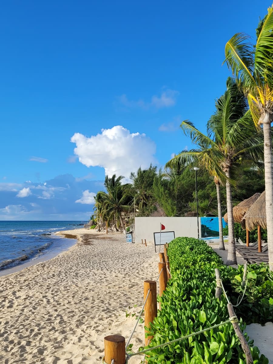 Como se locomover. Este lugar é o ponto de partida perfeito para tudo o que você deseja ver. A balsa para Cozumel parte da praia a cada hora em ponto, e os incríveis cenotes de que todos falam ficam a apenas 25 minutos de carro. Eu sempre digo aos meus amigos para se hospedarem aqui primeiro, porque você pode literalmente ir a pé a todos os lugares.