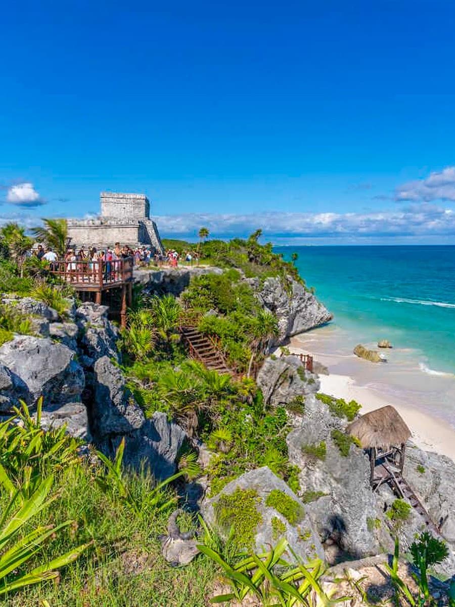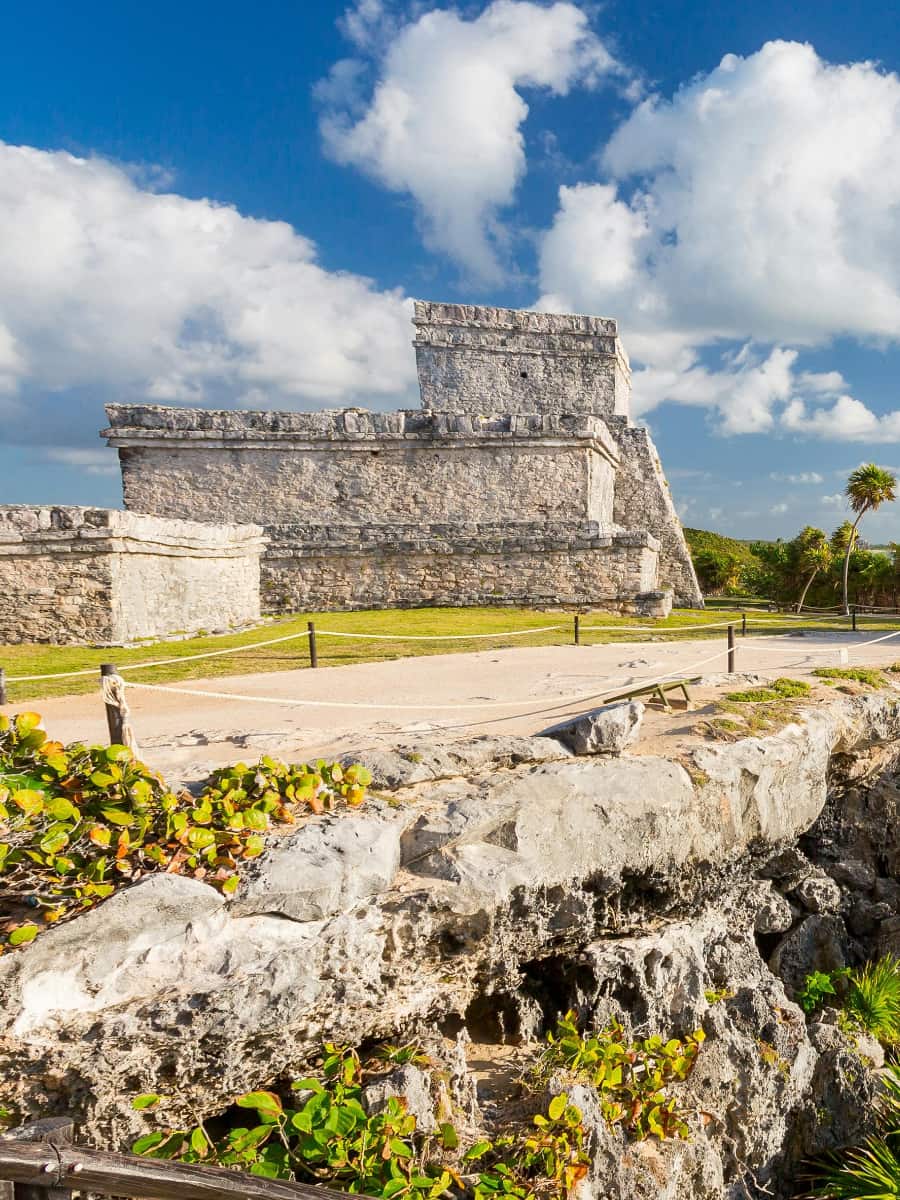 Ruínas antigas. As ruínas maias situadas no penhasco com vista para o Mar das Caraíbas são absolutamente impressionantes. Estive lá ao nascer do sol, quando quase não havia ninguém por perto, e parece que você está a descobrir algo completamente novo. O contraste entre essas pedras antigas e a água turquesa abaixo é diferente de qualquer outra coisa na Riviera Maya.