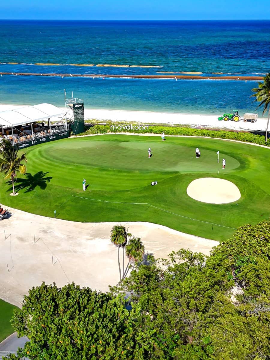 Paraíso do golfe. O campo de golfe El Camaleon já recebeu o PGA Tour, e eu já joguei lá duas vezes. O campo serpenteia pela selva e manguezais com vista para o mar, o que torna impossível concentrar-se na tacada. Mesmo que não seja um jogador de golfe sério, a experiência vale cada peso.